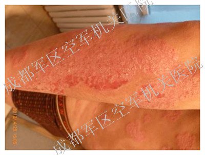 发病过程:3个月前出现红疹,并迅速布满全身。瘙痒甚,有少量麟屑。起始自行购买皮炎平擦拭,后于当地医院进行治疗,服用西药药物,疗效不明显,且皮损不断扩大。于10.10日来我院就诊。 |