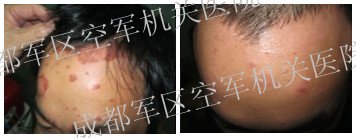 发病概述:患者额头出现大量脓疱状皮损,伴有瘙痒并覆以鳞屑,曾在当地附近多处求医,治疗效果均不佳。患者自述因治病心切曾用激素类和免疫抑制类药物治疗,后来病情出现“反弹”。 |