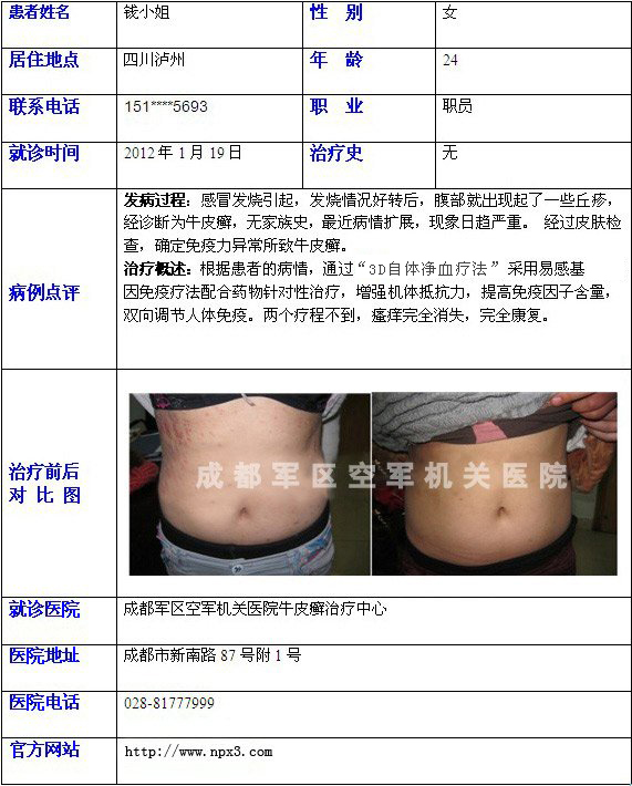您好,您当前所在的位置:成都军区空军机关医院 > 病例解析 > 钱小姐