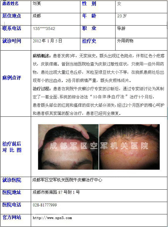 牛皮癣是一种常见多发的慢性皮肤炎症性疾病,病因复杂,极易反复,治疗难度大。成都军区空军机关医院牛皮癣治疗科室,采用诊疗技术——3D自体净血疗法,为更好服务于广大牛皮癣患者,治疗科室特推出"在线咨询预约"服务,为广大患者提供一个优质咨询平台。