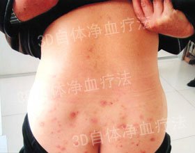 发病过程: 孙某的银屑病开始于三年前的冬天,背部和四肢伸侧的皮损十分严重,伴随着瘙痒,女人都是爱美的,再加上孙女士的工作是银行职员,对仪容的要求是比较严格的,工作中不允许出现有损公司形象的事情,柜面职员的举手投足间都代表着公司的形象。每到夏天,手臂上的疹子都显露在外面很影响形象。起初去了医院,医院诊断为寻常型银屑病,治疗过一阵,不见明显好转,工作中尽量长袖衫遮掩皮损,断断续续接受了多种治疗,对于银屑病的顽固,孙某只能扼腕叹气。 周围的同事朋友也帮着打听治疗银屑病的好医院,在一次偶然的机会,孙某得知我院在银屑病诊治方面很有权威,于是利用假期来到我院门诊。 治疗概述: 孙某来到我院时,医生详细检查了她的病症,患者腰背部、腿部皮损分布比较密集,额头、脖子等处有少量点状丘疹,斑块周围伴随新生点疹。随后,专家为他做了详细的检查,结合银屑病皮肤三维成像,动态的观测皮损发展情况,精确锁定病因病灶。 根据孙某的病情,专家给他制定了一套完整的康复方案,采用“3D自体净血疗法”,以中医为主,西医为辅的治疗方式,对病情进行双向调控,该疗法最大的特点是绿色安全,治疗过程排除激素药品,最大程度地减小药物对身体的副作用,内外结合安全高效。 仅仅一周后,孙某身上的皮损已经明显消退,瘙痒症状在中药药浴的治疗下也得到了很好地控制,一个疗程后,孙某身上的皮损已经完全消退,只留下少许色素沉淀斑,并且患者的患处不再有任何瘙痒。医生根据患者的康复状况又给他制定了巩固计划,经过10天的巩固治疗,孙某的皮肤各项指标均恢复到正孙水平,皮肤光滑如初,残留的色素斑完全消退。 经过后期跟踪回访,孙某康复良好,没有再出现复发迹象。 |