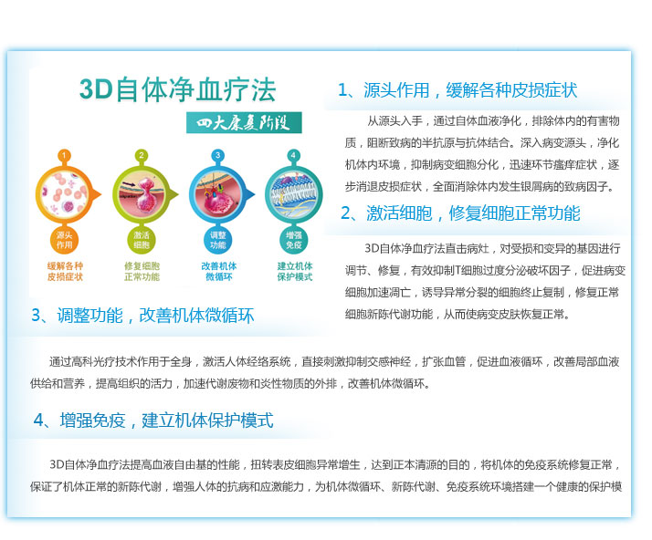 治疗方式:系统检测、3D自体净血疗法之免疫靶向疗法(核心)