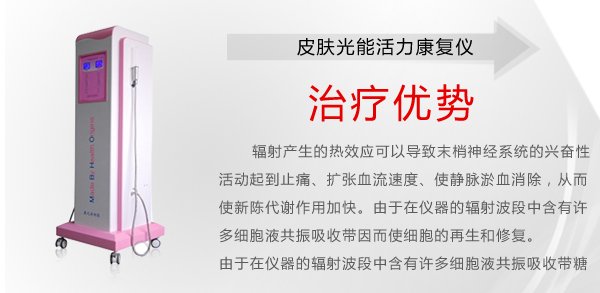 2、由于在仪器的辐射波段中含有许多细胞液共振吸收带,糖元含量增加,蛋白合成增加和三磷酸腺苷分解增加,因而使细胞的再生和修复过程增快,促进伤口和溃疡的愈合;同时也增加白血球的吞噬作用,提高机体的免疫功能。
