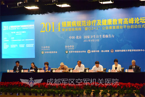为倡导银屑病规范诊疗,分享国际银屑病诊疗技术最新进展,9月13日,由中华中医药学会主办的“2014银屑病规范诊疗及健康教育高峰论坛”在北京卫计委(原国家卫生部)隆重召开,卫生部原副部长曹荣桂、国家中医药管理局原副局长于生龙等领导出席了会议。中国医学科学院皮肤病研究所原所长、教授、博士生导师叶顺章;首都医科大学北京同仁医院皮肤性病科主任、主任医师杨秀敏;空军总医院皮肤科医学博士袁小英等出席了大会。因时间问题未能到场的美国华盛顿大学医学院皮肤科主任葛菲教授、中国医学科学院皮肤病研究所常务副所长孙建方、北京友谊医院皮肤科主任医师、教授、博士生导师李邻峰等国内外皮肤病权威纷纷表示支持本次大会,用多种方式祝贺本届大会顺利召开。