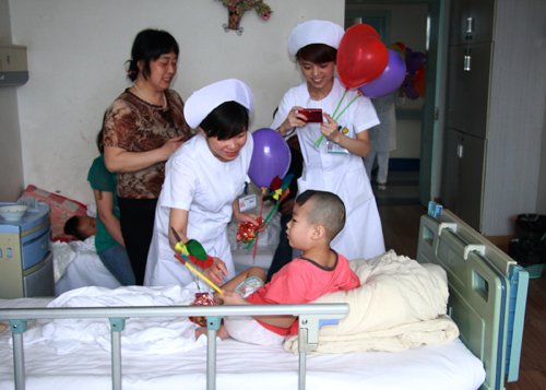 作为一名医护工作者,除了要努力解除患儿躯体上的病痛外,更要在精神上给予他们鼓励和支持。在院党支部关心、科室领导的重视下,每年的“六一”儿童节为孩子们送去祝福和快乐,已经形成了历年的惯例。为孩子们营造健康、和谐的节日气氛,让孩子们感受到儿科医护人员对他们真诚无私的关爱,让他们幼小的心灵感受到温暖与呵护!