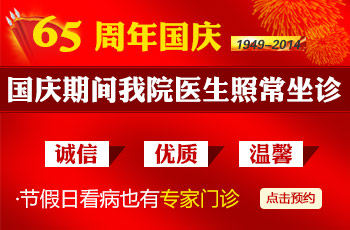 根据国务院《关于修改<全国年节及纪念日放假办法>的决定》,为便于各地区、各部门及早合理安排节假日旅游、交通运输、生产经营等有关工作,根据国务院办公厅通知,发布了2014年国庆节的放假通知。在即将迎来一年一度的国庆节,普天同庆。为了让患者朋友在节假日也能够顺利的完成牛皮癣的检查和治疗,我院始终如一地坚持“全年无假日”的便民措施。国庆期间正常接诊,有效地缓解节假日“看病难”问题,为患者提供极大的方便:看病时间自由掌握,不影响正常的工作和生活;不因医务人员休假而延误治疗的最佳时间。